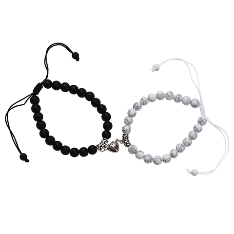 Pulsera trenzada de pareja de piedra turquesa negra mate y Blanca natural ST518