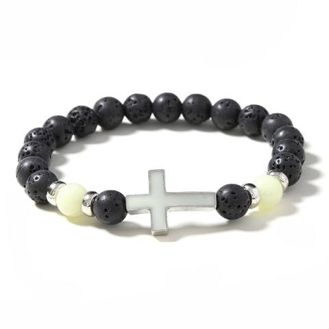 Piedra de lava natural y pulseras cruzadas luminosas encanto joyería pareja pulseras BSB1145