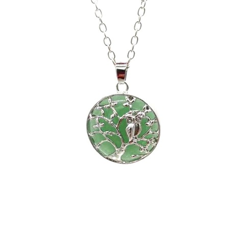 Collar redondo con colgante de árbol salvavidas, collar de jaspe de piedra de Yoga SN009