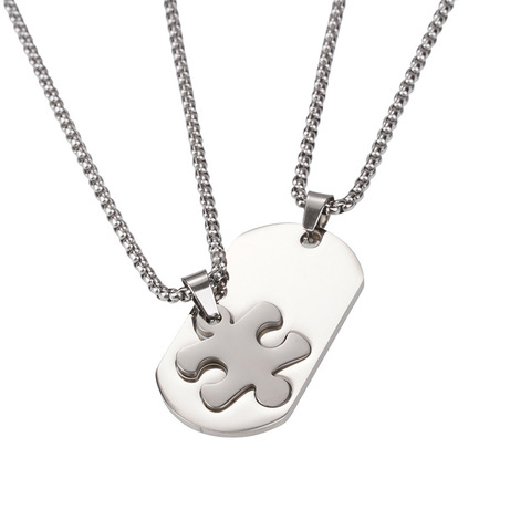 Nueva moda de acero inoxidable rompecabezas insignia pareja collar encanto mujeres hombres regalos SS030