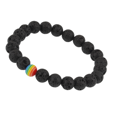 Pulsera de piedra de lava natural con cuentas de arcoíris para hombres y mujeres, regalos de joyería ST361