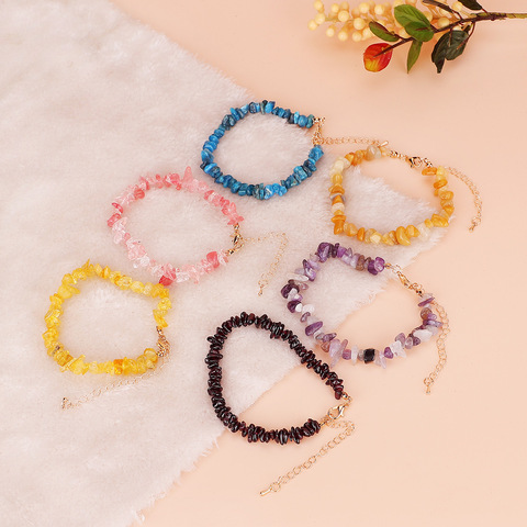 Chip Stone Beaded Piedra natural Pulsera de cadena inoxidable ajustable ST274